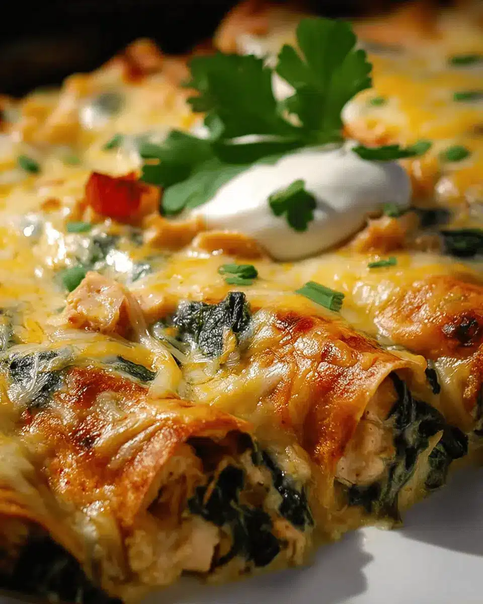 Absolutely! Spinach and Chicken Enchiladas are a great make-ahead option. You can prepare them up through the assembly stage, cover them tightly with plastic wrap or foil, and store them in the refrigerator for up to 24 hours. When you’re ready to enjoy your enchiladas, simply bake them straight from the fridge, adding a few extra minutes to the cooking time to make sure they’re heated thoroughly.