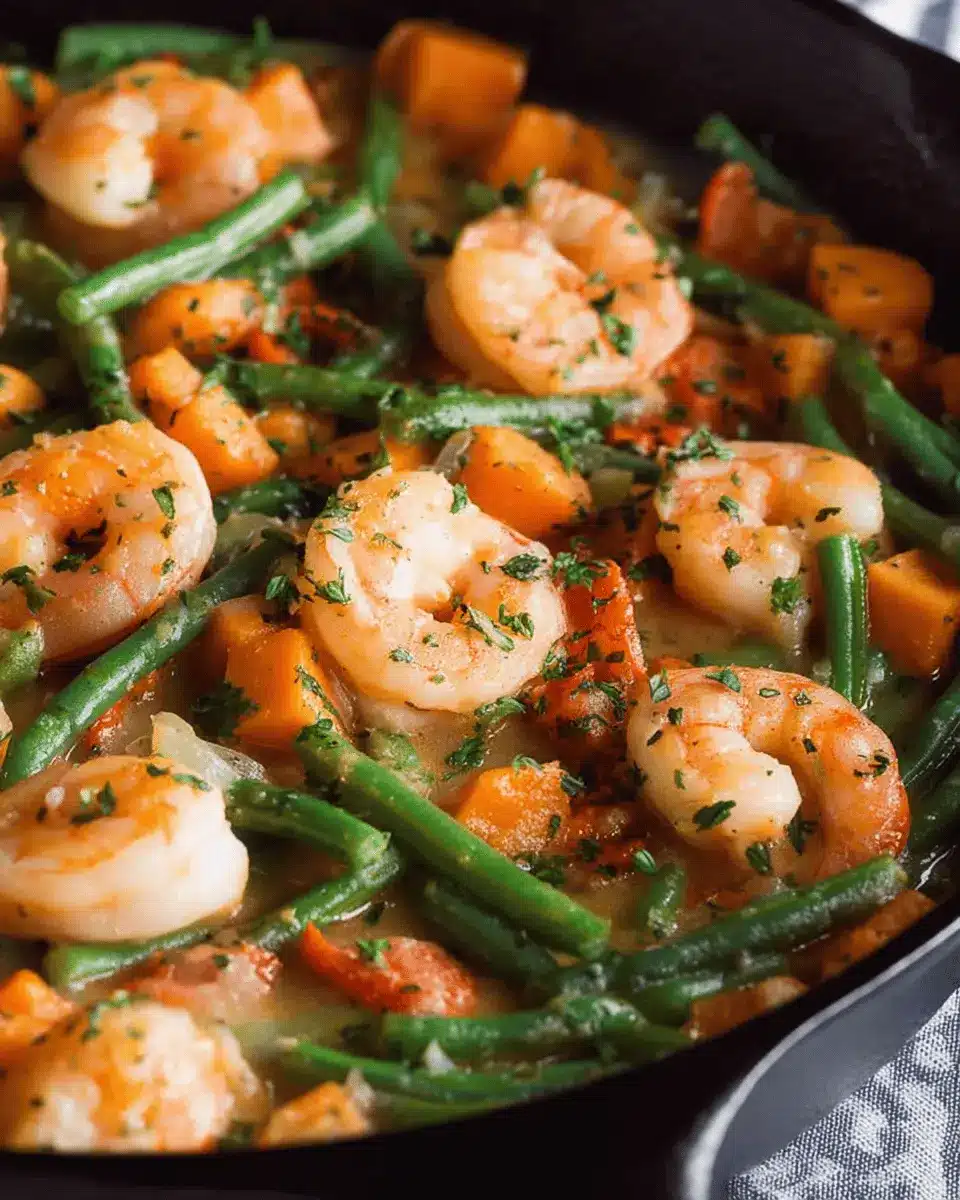 Introduction to Sweet Potato Green Beans Shrimp Skillet