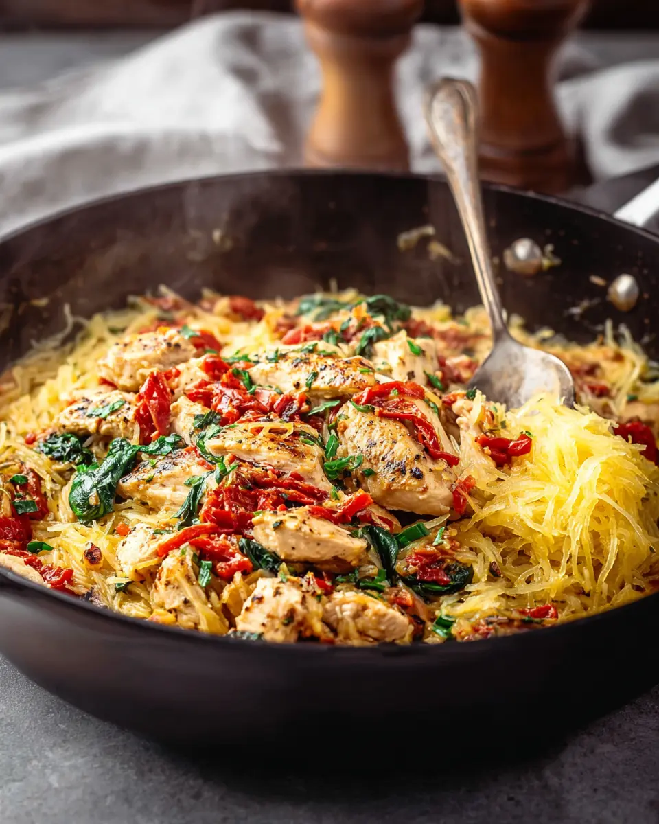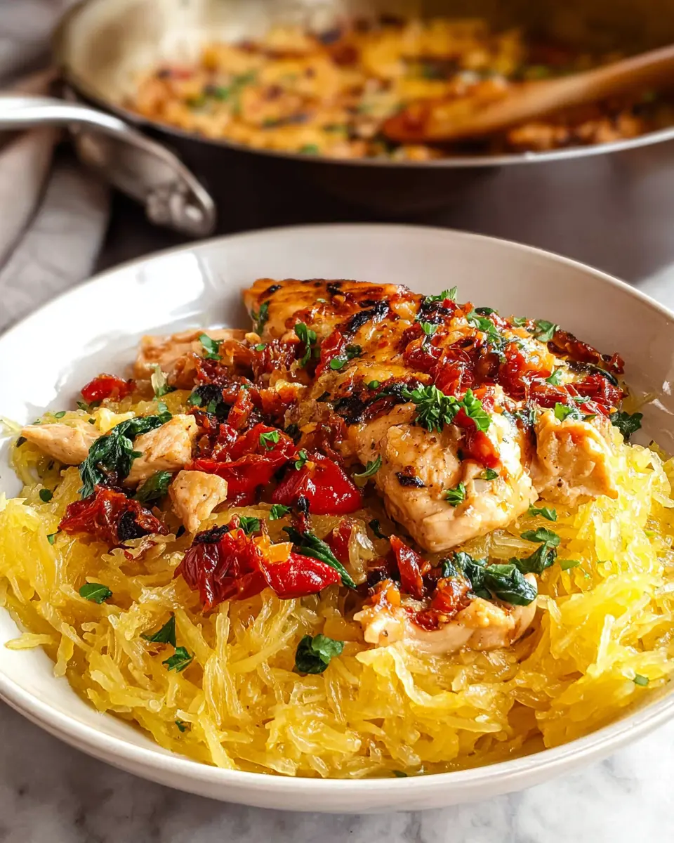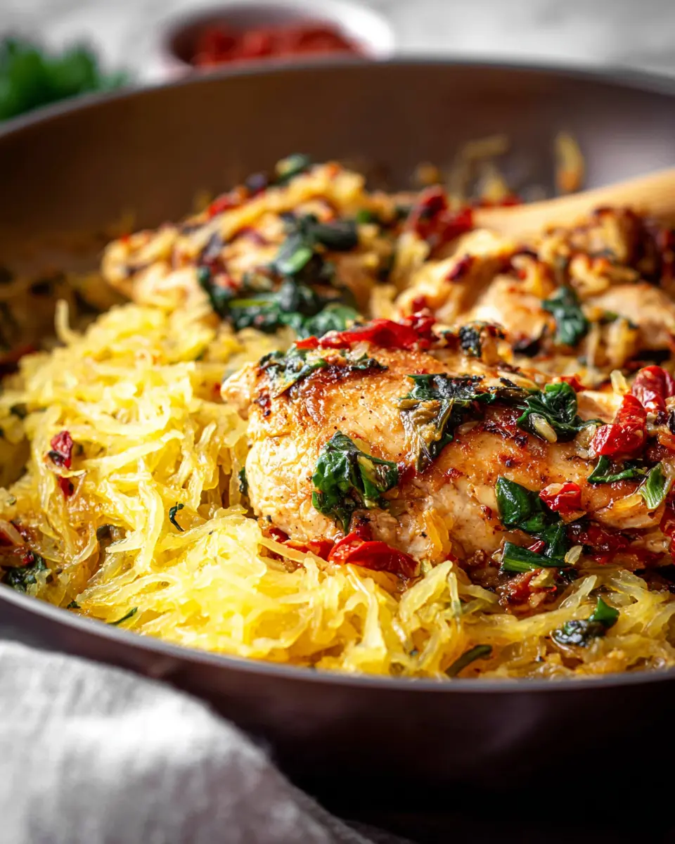 This dish combines tender chicken cooked to perfection with a creamy sauce infused with sun-dried tomatoes and garlic, all atop a bed of delicate spaghetti squash strands. Not only is it nutritious, but it's also a surefire way to impress your friends and family!