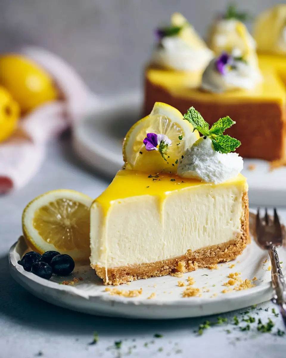 Elevate your vegan lemon cheesecake pie with delightful garnishes. Consider topping it with: