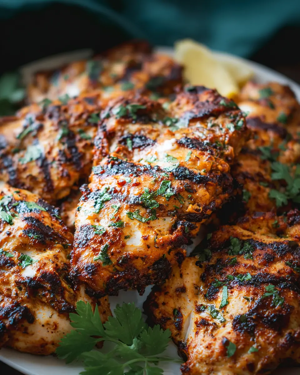 When it comes to serving your yogurt marinated chicken, presentation can truly make a difference. Consider slicing the grilled chicken and serving it atop a vibrant bed of grains or greens for a beautiful platter. Garnish with extra chopped cilantro and a sprinkle of lemon zest for a pop of color. For a more casual setup, serve in tacos with avocado and fresh salsa, allowing guests to create their own custom bites. For a lovely finishing touch, drizzle a little extra yogurt sauce on top, bringing a creamy element to every bite. Enjoy creating your perfect plate!